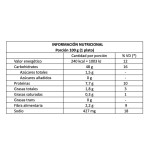 (*) % Valores Diarios con base a una dieta de 2.000 kcal u 8.400 kJ. Sus valores diarios pueden ser mayores o menores dependiendo de sus necesidades
